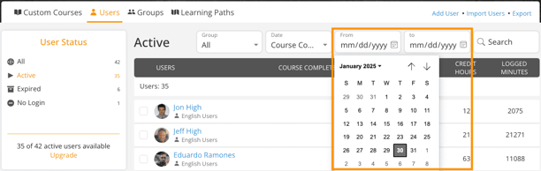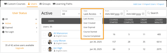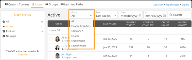 Active Users: Users without a User Expires date; counts towards your Active User license. Active Users have access to CustomGuide.
