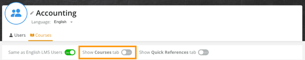 Hide Tabs from User Find the Group you want to edit. On the group page, click on the Courses tab. To hide the Courses tab from users, toggle Show Courses to Off.