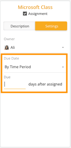 - If choosing By Time Period, enter the number of days after the assignment is given for it to be due. The due date will be calculated based on the date each user was last assigned the assignment.
