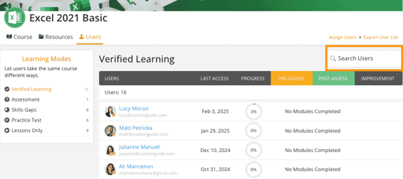 You can also use the Search Users bar to quickly find a specific user.